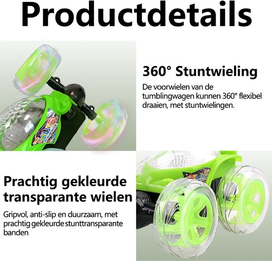 • 360° FLIPS & STUNTS: Duw op de knop en zie 'm spectaculair over de kop gaan! Maak de coolste trucs: voorwiel flips, staand rijden, driften en zelfs ronddraaiende salto's - eindeloos actieplezier binnen en buiten!