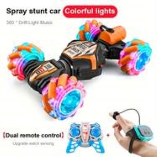 Off-road RC-speelauto voor ultiem buitenplezier – Beleef spannende avonturen met deze robuuste, afstandsbedienbare off-road auto, speciaal ontworpen voor buiten. Uitgerust met schitterende lichten, meeslepende muziek en realistische nevel effecten voor een extra speelse ervaring. Inclusief twee hoogwaardige controllers: een precieze joystick-afstandsbediening en een handige polsband-afstandsbediening, zodat kinderen en volwassenen het voertuig op hun eigen manier kunnen besturen. Perfect voor urenlang interactief spel en avontuur in de tuin, het park of tijdens speelafspraken.