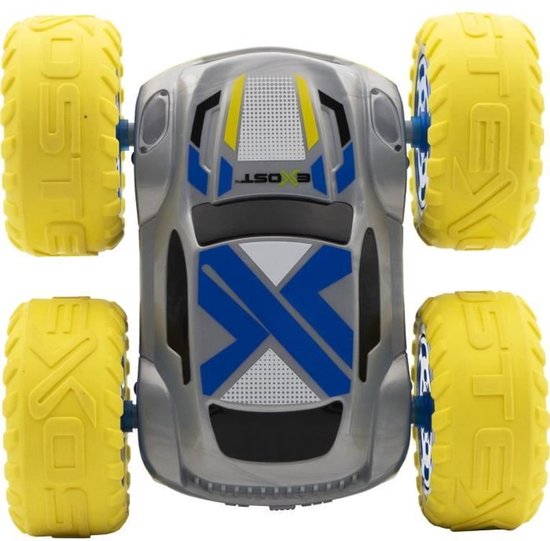 EXOST - 360 CROSS FLASH GEEL 1:18 - Radiografisch bestuurbare auto die obstakels in 360° overwint - Rijdt aan twee kanten, LED's op de wielen en koplampen, razendsnelle acceleratie, ultrabestendige terreinbanden - Schaal 1/18 - Snelheid 12 km/u - 2,4 GHz-technologie - Bereik 25 m - Afmetingen: L16 x D16 x H7cm - Auto met oplaadbare batterij (USB-kabel meegeleverd), batterijen voor afstandsbediening 2 x AA (niet meegeleverd) - Vanaf 5 jaar.