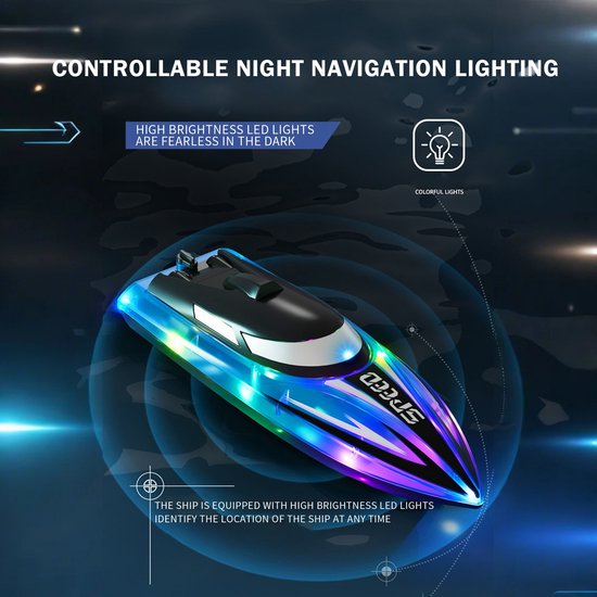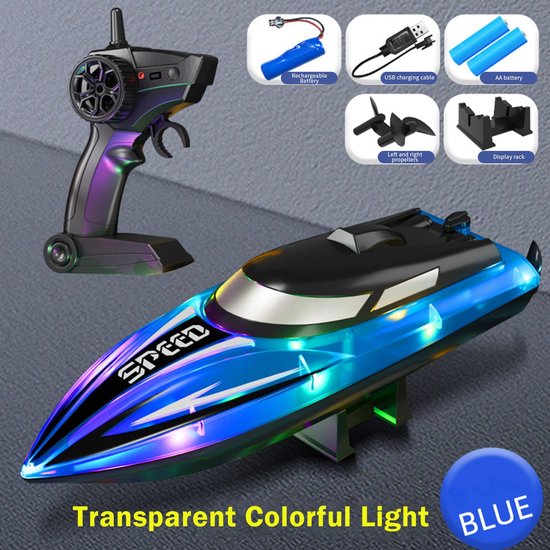 Op afstand bestuurbare boot voor kinderen – RC-boten met LED-verlichting voor zwembad en badkuip – 2,4 GHz RC-raceboten – Volledig waterdicht – Oplaadbare batterijen – Zomers waterspeelgoed – Blauw