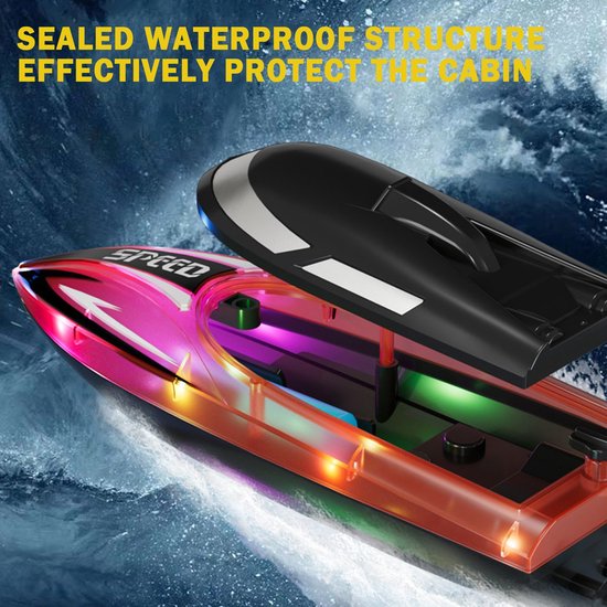 Op afstand bestuurbare boot voor kinderen – RC-boten met LED-verlichting voor zwembad en badkuip – 2,4 GHz RC-raceboten – Volledig waterdicht – Oplaadbare batterijen – Zomers waterspeelgoed – rood