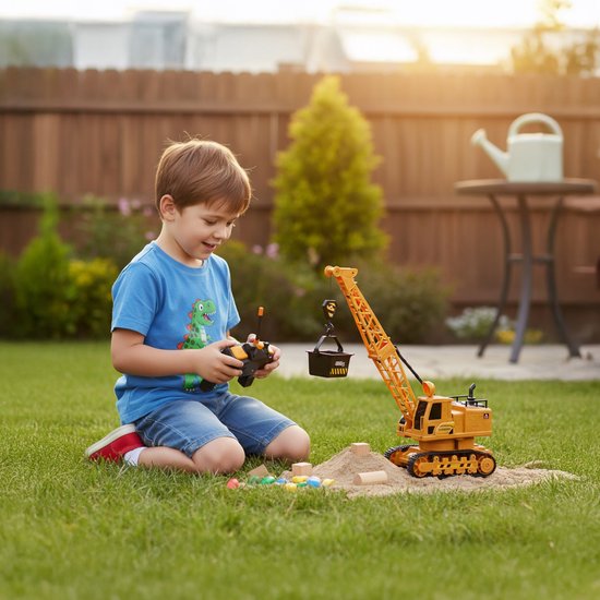 Met de beweegbare arm kunnen lasten worden opgetild, gedraaid en neergelaten, zodat kinderen zich als echte kraanmachinisten voelen.