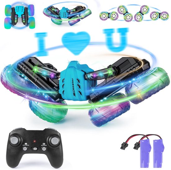 Op afstand bestuurde auto, dubbelzijdig 360° flip-led, knipperend, RC-autospeelgoed vanaf 3, 4, 5, 6, 7, 8, 9 jaar, jongens, cadeau voor kinderen, 2,4 GHz, 4 WD, stunt, RC Car met