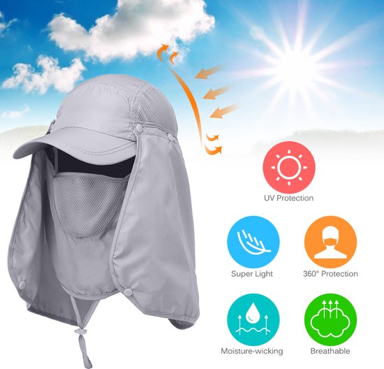 Outdoor Sport Hiking Vizier Hoed UV Bescherming Gezicht Nekbescherming Vissen Zonnebeschermingspet
