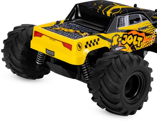 De RC-auto X-Jolt biedt kracht en stuurprecisie in een compact formaat. Achterwielaandrijving, terreinbanden, veerophanging en een bereik tot 100 meter maken hem tot de ideale partner voor dynamisch rijden op uiteenlopende ondergronden.