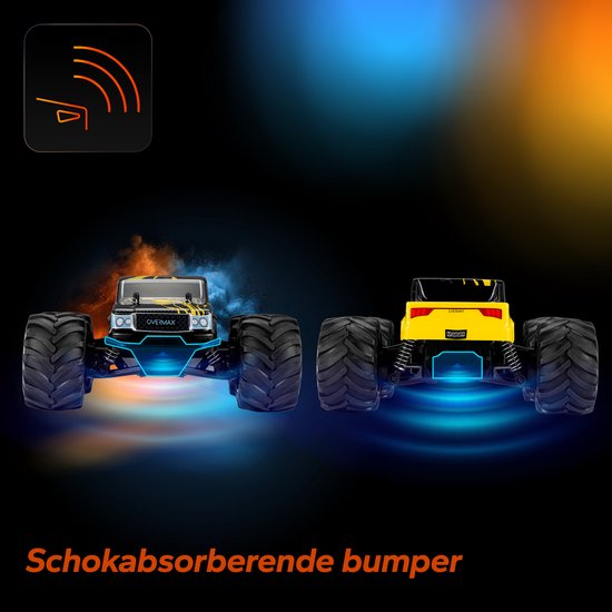 Offroad-look, offroad-mogelijkheden. Wielen met een diameter van 6 cm en afmetingen van 21 × 18 × 9,5 cm (schaal 1:20) geven jouw RC-auto het karakter van een echte hindernissenbedwinger.