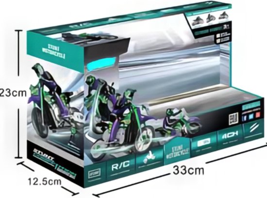 2.4G 4 Functies Afstandsbediening Motorfiets met Biker, Light & Spray. Flexibele en wendbare high-speed op afstand bestuurbare motorfiets, gemakkelijk te sturen, heeft een remfunctie. Dit product is bedoeld voor kinderen ouder dan 3 jaar. Kleur: Groen Batterij: 6 AA-batterijen niet inbegrepen Materiaal: ABS Product Grootte: 25.5*10.4*17