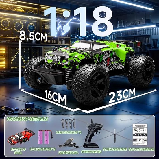 Laat kinderen het avontuur beleven met de PENGBU RC Monstertruck, een robuuste en kleurrijke op afstand bestuurbare auto ontworpen voor kinderen vanaf 6 jaar. Dankzij het Duitse design, de dubbele carrosserie en de knipperende verlichting is dit de ideale keuze voor jonge snelheidsfans!