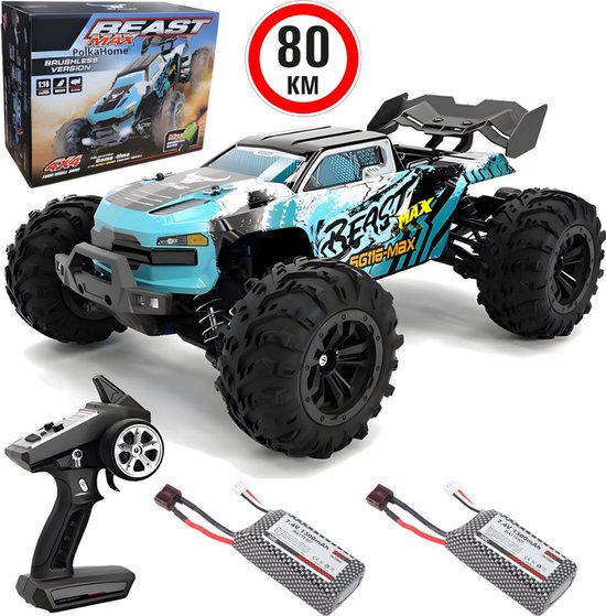 Ervaar pure snelheid met de PolkaHome® Razendsnelle RC Auto. Deze krachtige 1:16 offroad buggy met borstelloze motor haalt moeiteloos snelheden tot 80 km/u en biedt een professionele rijervaring voor liefhebbers van echte actie.