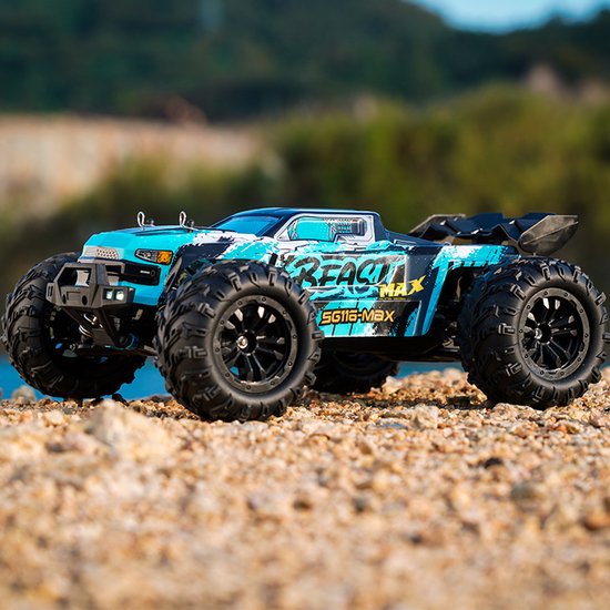 De vierwielaandrijving (4WD) en metalen aandrijfonderdelen zorgen voor stabiliteit, kracht en duurzaamheid – zelfs op ruw terrein. Dankzij de onafhankelijke schokdempers en grote terreinbanden rijdt de auto soepel over zand, gras of modder.