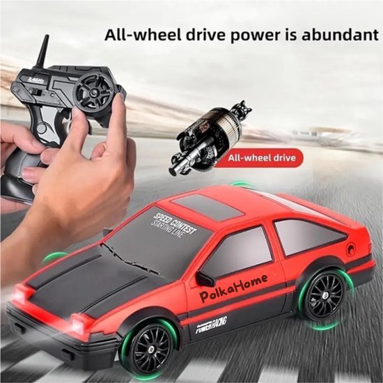 De Mini RC Drift Car is uitgerust met een hoogsnelheidsmotor die snelheden tot 15 km/u kan bereiken. Dankzij de krachtige vierwielaandrijving biedt de auto stabiele en soepele prestaties, zelfs bij snelle bochten en drifts, waardoor je altijd volledige controle hebt.