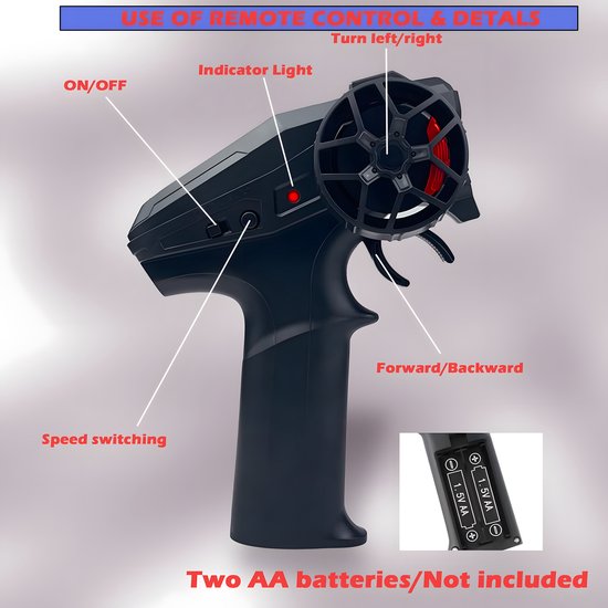 (Let op: de afstandsbediening werkt op 2 × AA-batterijen, niet inbegrepen.) - Langer speelplezier: Wordt geleverd met 2 oplaadbare accu’s, zodat je extra lang kunt racen zonder onderbreking.