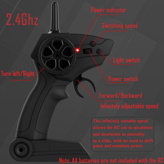 (Let op: de afstandsbediening werkt op 2 × AA-batterijen, niet inbegrepen.) - Ideaal als cadeau: Perfect voor zowel kinderen als volwassenen die gek zijn op snelheid en actie.