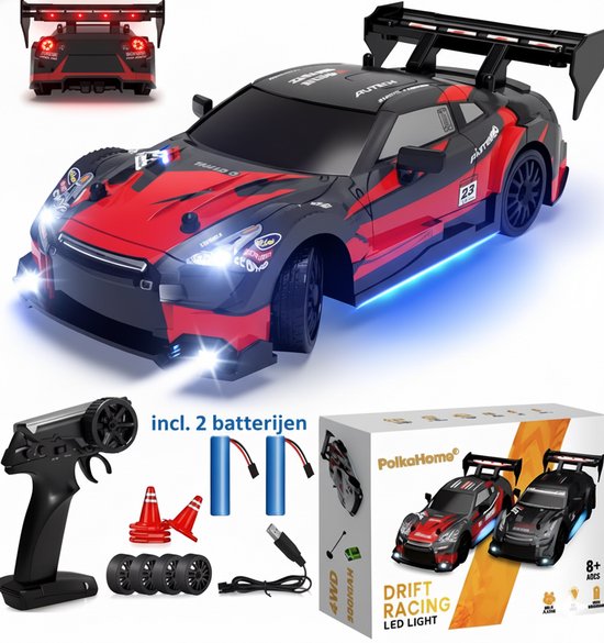 PolkaHome Supersnelle RC Drift Auto 1:24 – 4WD met LED-verlichting en Afstandsbediening.