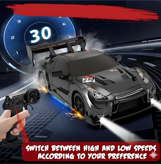 PolkaHome Zeer Snelle RC Drift Auto 1:24 – 4WD Afstandsbediening Auto met Verlichting