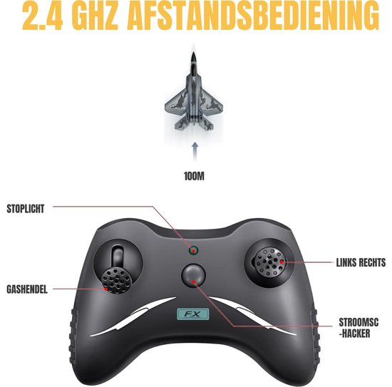 - Zet de afstandsbediening aan en koppel deze met het vliegtuig via 2.4GHz frequentie.