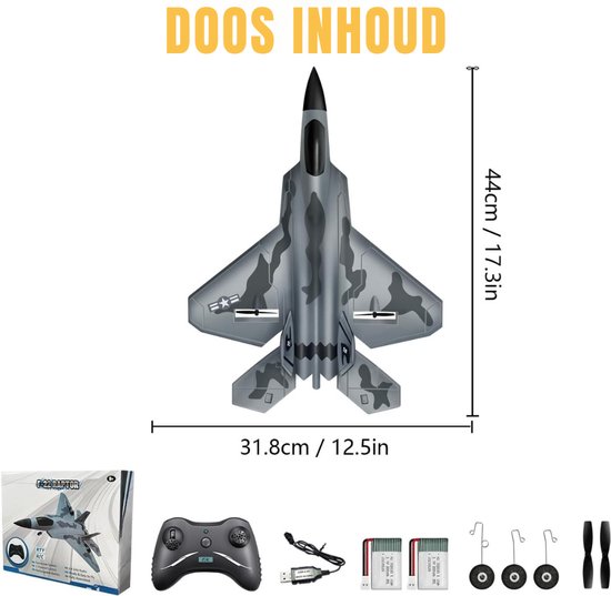 Avontuur en Plezier Voor IedereenDit F-22 RTF vliegtuig brengt urenlang plezier en spanning direct in je handen. Je voelt de opwinding van een echte piloot terwijl je het vliegtuig soepel door de lucht manoeuvreert, zonder bang te hoeven zijn voor crashen. Het is de perfecte combinatie van avontuur en veiligheid voor jong en oud.