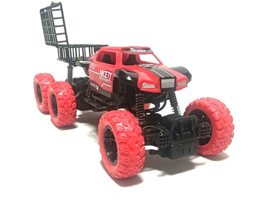 Deze 4x4 truck is speciaal ontworpen voor ruwterrein.de auto heeft vering voor en achter, de auto is uitgerust met antislipbanden daardoor heeft de auto goede grip op de ondergrond.de metalen schokdempers,geven de auto een goed dempend effect als de auto gaat rijden. de off-road 4x4 rock crawler, monstertruck is voorzien van een karretje waar je spulletjes mee kan vervoeren.dit speelgoed is voor kinderen vanaf 3 jaar en ouder.