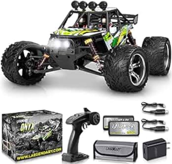 Complete set 1 x schaal 1:12 rc auto Laegendary, lengte 31 cm Afstandsbediening 2.4 2 x 7,4 Volt 1500 mAH oplaadbare accu 2 x stekker om op te laden, opladen gaat via usb met pc, laptop of je eigen telefoon. Tas om accu's veilig op te bergen.