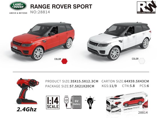 RC auto 1:14, Range Rover Sport RC, Land Rover radiografisch, bestuurbare auto kind, oplaadbare 7.4V RC auto, elektrische speelgoedauto, SUV modelauto, afstandsbediening auto, RW 28814, speelgoed auto 3 jaar.