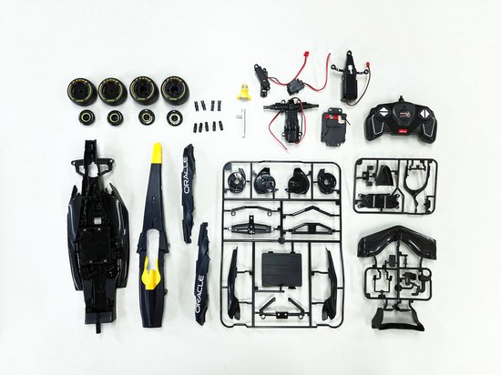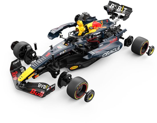 • Geweldig leuk om te bouwen, spelen (met alle functies van vooruit, achteruit, stoppen, linksaf en rechtsaf) en tentoon te stellen deze RedBull Formule 1 RB19 afstandsbediening auto