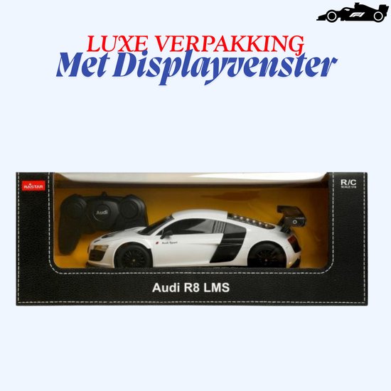 Rastar Audi R8 1:18 RC Auto Wit – Bestuurbare Auto - RC Auto - Luxe Afstandsbestuurbare Sportwagen met Realistische Details, Rubberen Banden & Precisiebediening – Duurzaam Model voor Kinderen & Volwassenen – Met Ebook