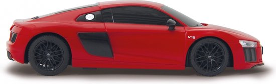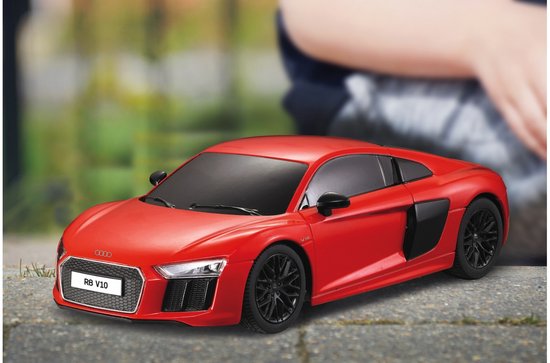 Bestuur jouw eigen Audi R8 met gedetailleerd interieur. De sportauto is een replica van het echte voertuig en gemaakt op een schaal van 1:24. Met de afstandsbediening bepaal jij welke kant de auto op gaat en met welke snelheid. De auto werkt op drie AA-batterijen (niet inbegrepen) en de afstandsbediening werkt op twee AA-batterijen (niet inbegrepen).