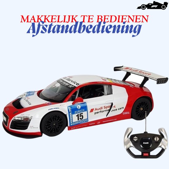 Rastar Audi R8 LMS 1:14 RC Auto Wit-Rood – Bestuurbare Auto - RC Auto - Gelicentieerde Afstandsbestuurbare Sportwagen met Licht, Vering & Realistisch Interieur – Snelheid tot 9 km/u – Perfect Cadeau voor Kinderen & Verzamelaars – Met Ebook