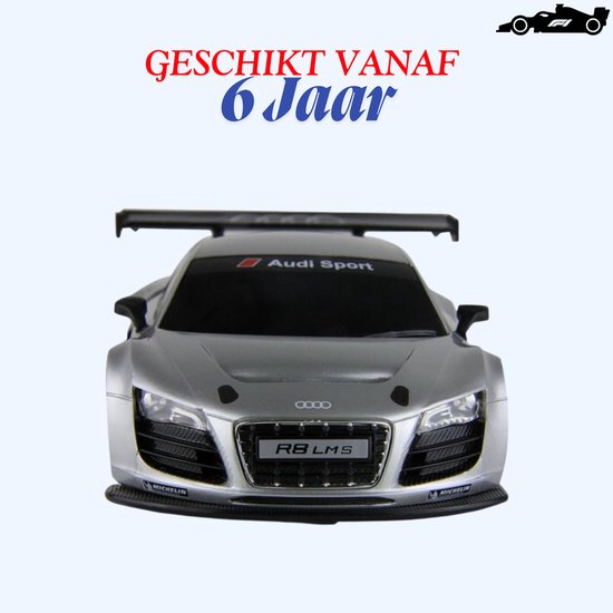 Rastar Audi R8 LMS 1:24 RC Auto Zilver – Realistische Afstandsbestuurbare Sportwagen met Openende Deuren, Luxe Race Design & Precieze Besturing – Duurzaam Model voor Kinderen & Verzamelaars – Met Ebook