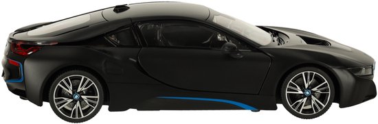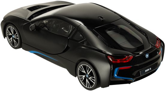 Rastar - BMW i8 1:14 Zwart RC Auto met Openende Deuren – Bestuurbare Auto - Luxe Radiografisch Bestuurbare Sportauto met Realistisch Ontwerp – Krachtige Prestaties en Gedetailleerde Afwerking – Perfect Cadeau voor Autoliefhebbers – Met Ebook