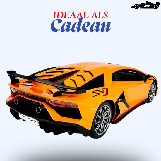 Rastar Lamborghini Aventador 1:14 Oranje R/C Sportauto – Bestuurbare Auto - RC Auto - Realistisch Design met LED Verlichting, 2.4GHz Afstandsbediening, Snelheid tot 9 km/u, Luxe Miniatuur Auto voor Kinderen & Volwassenen – Met Ebook