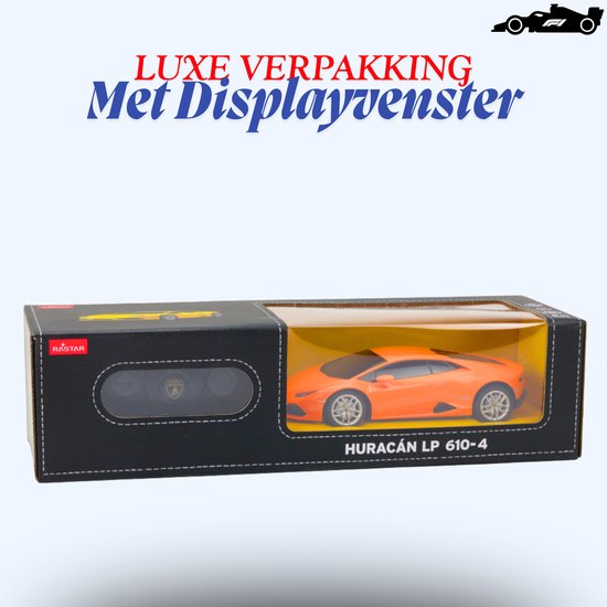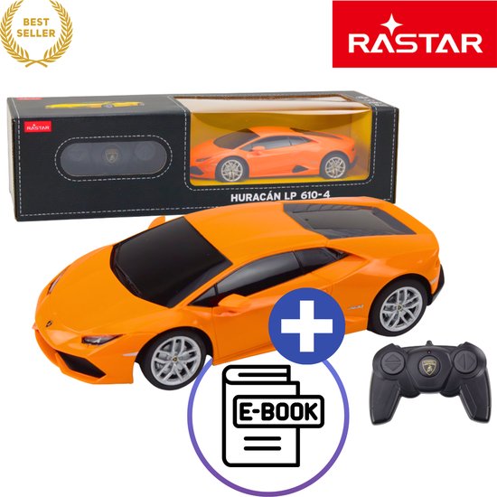 Rastar Lamborghini Huracan LP610-4 1:24 Oranje R/C Sportauto – Bestuurbare Auto - RC Auto - Realistisch Design met Rubberbanden, LED Verlichting, 2.4GHz Afstandsbediening, Luxe Miniatuur Auto voor Kinderen vanaf 6 Jaar – Met Ebook