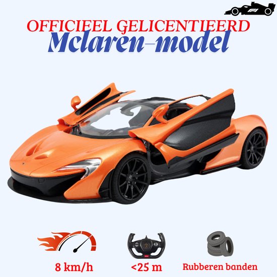 Rastar McLaren P1 1:14 Oranje RC Auto – RC Auto - Afstandsbestuurbare Sportwagen met LED Verlichting, Rubberen Banden, Realistisch Interieur, 2.4GHz Besturing, Schokdemping en Topsnelheid tot 9 km/u – Luxe Speelgoedauto voor Kinderen – Met Ebook