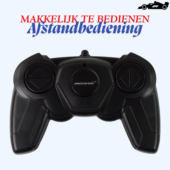 De auto wordt bestuurd met een ergonomische afstandsbediening waarmee je soepel vooruit, achteruit en zijwaarts kunt rijden. Dankzij de rubberen banden rijdt de McLaren stabiel op verschillende oppervlakken – van parket tot buitenterrein. De krachtige motor, gevoed door AA-batterijen, levert een dynamische rijervaring voor urenlang vermaak.