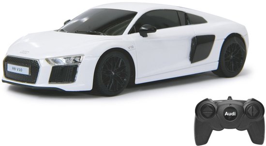 Bestuur jouw eigen Audi R8 met gedetailleerd interieur. De sportauto is een replica van het echte voertuig en gemaakt op een schaal van 1:24. Met de afstandsbediening bepaal jij welke kant de auto op gaat en met welke snelheid. De auto werkt op drie AA-batterijen (niet inbegrepen) en de afstandsbediening werkt op twee AA-batterijen (niet inbegrepen).