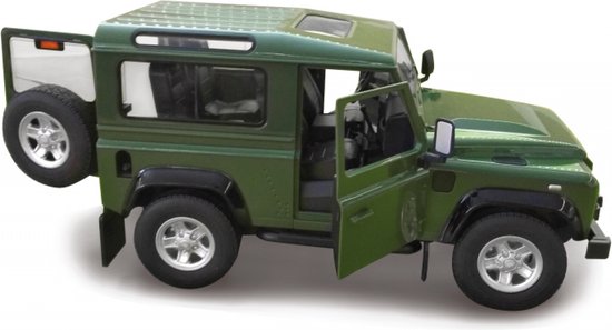 Bestuur jouw eigen Land Rover Defender met gedetailleerd interieur. Deze jeep is een replica van het echte voertuig en gemaakt op een schaal van 1:24. Met de afstandsbediening bepaal jij welke kant de auto op gaat en met welke snelheid. De auto werkt op vijf AA-batterijen (niet inbegrepen) en de afstandsbediening werkt op twee AA-batterijen (niet inbegrepen).