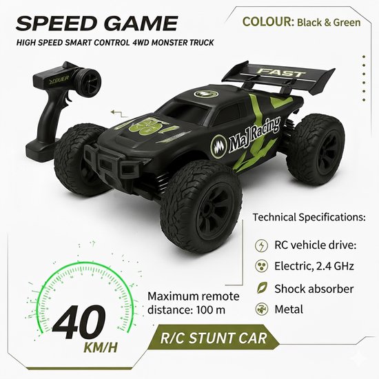 - 2.4GHz Afstandsbediening: Betrouwbare en storingsvrije verbinding met lange reikwijdte, ideaal voor kinderen en volwassenen.