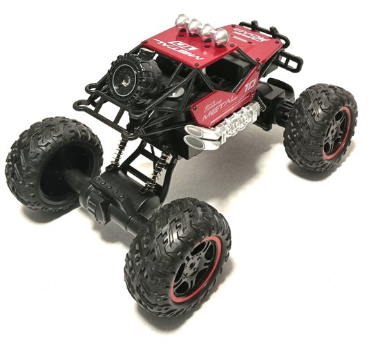 Deze high-speed rc-truck is ontworpen voor ruwterrein.de auto heeft vering voor en achter,en de auto is uitgerust met antislipbanden daardoor heeft de auto goede grip op de ondergrond.de metalen schokdempers,geven de auto een goed dempend effect.de off-road rock crawler, monstertruck met rookspray,(simulatie van rookafvoer), met led verlichting. is voor kinderen vanaf 6 jaar en ouder.
