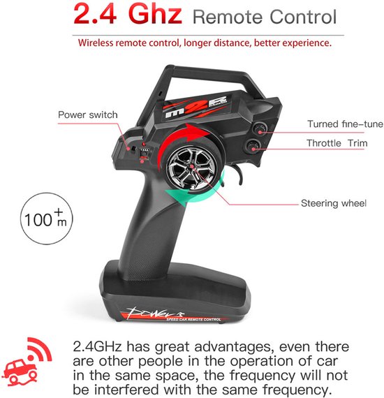3. 2,4 GHz radiosysteem met anti-jamming-functie maakt het mogelijk om tegelijkertijd op hetzelfde circuit te racen. 100 meter controleafstand, vrij racen.