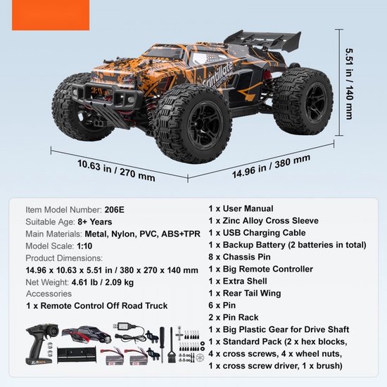 Duurzame constructie van nylon, metaal en versterkte componenten Een efficiënt differentieel, versterkte aandrijflijn en stevig chassis van nylon en koolstofstaal bieden langdurige betrouwbaarheid, ook bij intensief gebruik.