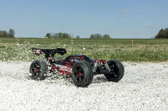 Ervaar ultieme snelheid en controle met deze krachtige RC auto, ontworpen voor de echte liefhebber. Heb je genoeg van langzame modellen en wil je de sensatie van hoge snelheden voelen? Deze auto brengt het racen naar een nieuw niveau, zowel op de weg als off-road. Dankzij de indrukwekkende borstelloze aandrijving, die snelheden tot 80 km/u haalt, en een storingsvrij 2,4 GHz afstandsbedieningssysteem met een nauwkeurige stuurservo, geniet je van maximale precisie en stabiliteit. De robuuste aluminium chassisplaat en duurzame schokdempers maken dit model geschikt voor elk terrein en elke uitdaging. Ideaal voor urenlang speelplezier. Met een indrukwekkende lengte van 505 mm en een gewicht van 3909 g, biedt dit model een stabiele en meeslepende rijervaring. De innovatieve technologie en de solide constructie zorgen voor langdurig rijplezier. Haal deze indrukwekkende RC auto vandaag nog in huis en beleef zelf het ongekende rijplezier!