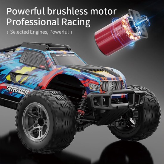 Ervaar ongekend off-road plezier met deze krachtige RC auto, ontworpen voor de echte liefhebber. Bent u op zoek naar een voertuig dat elke uitdaging aankan en urenlang entertainment biedt? Deze robuuste, op afstand bestuurbare auto is uw antwoord op de zoektocht naar snelheid en duurzaamheid. Deze 1:10 schaal 4WD truck is uitgerust met een indrukwekkende borstelloze motor die snelheden tot wel 60 km/u haalt. Dankzij de waterdichte ESC en de metalen versterkingen is hij bestand tegen diverse weersomstandigheden en terreinen, van zand en gras tot modderige paden. De vier onafhankelijke hydraulische schokdempers zorgen voor een stabiele rit, zelfs op oneffen ondergronden. Met de meegeleverde batterijen kunt u tot wel 60 minuten ononderbroken rijden, terwijl de 2.4 GHz afstandsbediening zorgt voor een storingsvrije besturing tot 80 meter. Wat deze RC auto echt onderscheidt, is de combinatie van een krachtige borstelloze motor met een duurzame, metalen versterkte constructie, wat zorgt voor uitzonderlijke prestaties en een lange levensduur. Haal het maximale uit uw off-road avonturen en bestel deze indrukwekkende RC truck vandaag nog voor eindeloos rijplezier.