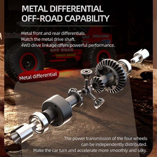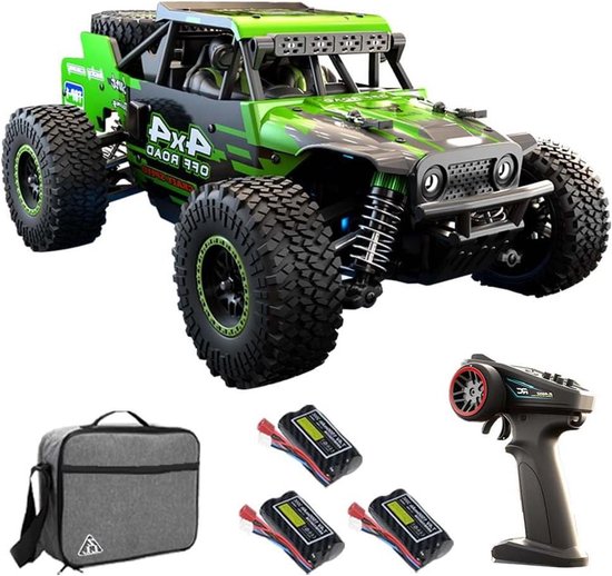 Ervaar de ultieme sensatie met deze krachtige RC auto, ontworpen voor snelheid en avontuur op elk terrein. Droom je ervan om met hoge snelheden over onverharde paden te scheuren en indrukwekkende driften neer te zetten? Deze op afstand bestuurbare racewagen maakt het mogelijk en brengt de spanning van offroad racen direct naar jouw handen. Deze indrukwekkende 4WD buggy is uitgerust met een robuuste koolborstelmotor die een topsnelheid van 40 km/u haalt, perfect voor spannende races en uitdagende manoeuvres. Dankzij de vierwielaandrijving met geavanceerde wielophanging en gesimuleerde monstertruck-banden, biedt de auto uitzonderlijke grip op diverse ondergronden zoals zand, modder en gras. De meegeleverde drie accu's zorgen voor een verlengde speeltijd tot wel 45 minuten, zodat het plezier ononderbroken doorgaat. Wat deze RC auto echt onderscheidt, zijn de hoogwaardige metalen componenten, waaronder de vloerplaten, aandrijfassen en motorkoellichamen, die zorgen voor extra duurzaamheid en stabiliteit tijdens het rijden. Laat je vrienden verbazen met de prestaties van deze indrukwekkende machine en beleef urenlang offroad plezier.