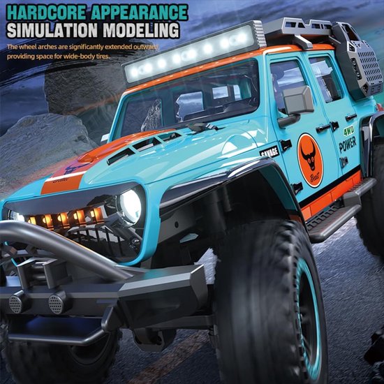 Deze RC truck is waterbestendig en ontworpen voor verschillende ondergronden. Dankzij de krachtige motor en flexibele besturing is hij geschikt voor avontuurlijk terrein zoals modder, rotsen en zand. Ideaal om mee te nemen naar het park, het strand of gewoon thuis in de tuin voor een spannende race of klimuitdaging. De gebruiksvriendelijke afstandsbediening maakt het bedienen eenvoudig, ook voor beginners.