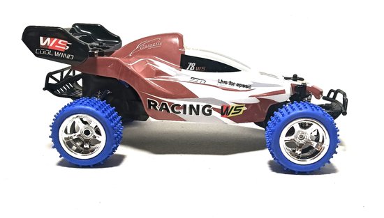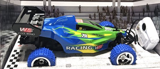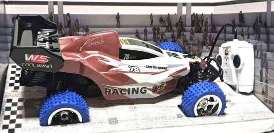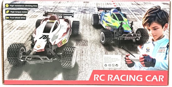 deze rc-buggy is ontworpen voor ruwterrein.de auto heeft vering voor en achter,en de auto is uitgerust met antislipbanden daardoor heeft de auto goede grip op de ondergrond.de metalen schokdempers,geven de auto een goed dempend effect. als de auto met hoge snelheid gaat rijden. dit speelgoed is voor kinderen vanaf 3 jaar en ouder. • Uitgerust met een 4 kanaals afstandsbediening,