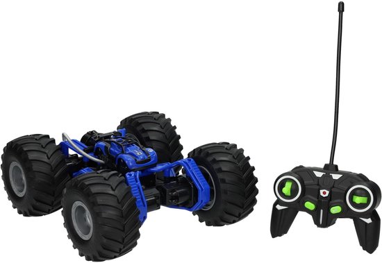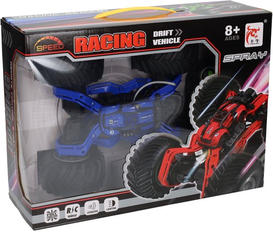Stoere RC auto in blauwe uitvoering met rookfunctie en verlichting. Wordt geleverd met afstandsbediening en oplaadkabel. Gemaakt van kunststof en metaal, geschikt voor kinderen vanaf 8 jaar.