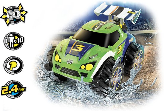 Maak kennis met de Nikko RC Nano VaporizR 3 – een unieke amfibische RC auto die elk terrein aankan. Of het nu gaat om modder, plassen, sneeuw of gewoon asfalt: deze stoere racer levert ultiem speelplezier. Met 4x4-aandrijving, 360° spins en een robuust waterbestendig design is de VaporizR 3 klaar voor avontuur. Dankzij de 2,4 GHz afstandsbediening race je storingsvrij en kun je tot 10 voertuigen tegelijk besturen. Klaar om te racen? De Nano VaporizR 3 brengt actie naar elk terrein!