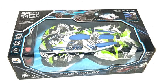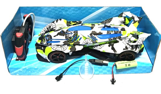 - Inhoud van het pakket: Het pakket bevat 1 RC-auto, 1 afstandsbediening, 1 oplaadbare Li-Ion batterij, 1 USB-kabel en 1 waterdruppelaar. deze RC-afstandsbediende auto heeft een schaal van 1:14, waardoor hij perfect is voor kinderen van 3 jaar en ouder. De afstandsbediende raceauto heeft een strak sportontwerp, compleet met LED-verlichting die zorgt voor een meeslepende speelervaring voor je kind. water Smoke Spray: de auto is voorzien van een geweldige waterrookspray. Gebruik simpelweg de druppelaar om het watercompartiment in de auto te vullen.