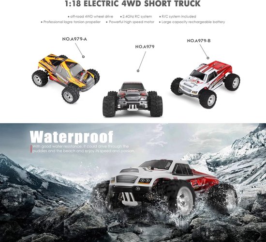 - 2.4 GHz afstandsbediening: Zo heb je een groot bereik van meer dan 100 meter, zonder last van storingen of interferentie met andere RC-voertuigen.