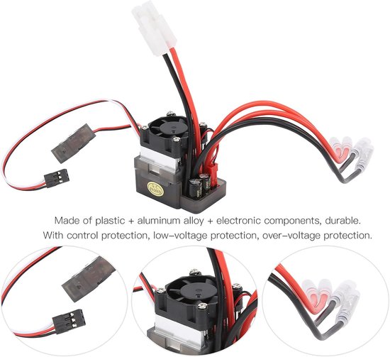 Verbeter de prestaties van uw op afstand bestuurbare voertuigen met deze geavanceerde snelheidsregelaar. Speciaal ontworpen voor RC auto's en schepen, biedt dit apparaat nauwkeurige controle over uw motoren. Deze ESC is ideaal voor hobbyisten die hun RC-ervaring willen optimaliseren. Met functies zoals controle, laagspannings- en overspanningsbeveiliging, zorgt de snelheidsregelaar voor een veilige en efficiƫnte werking. Het compacte formaat en de eenvoudige installatie maken het een praktische toevoeging aan diverse RC-modellen. De snelheidsregelaar beschikt over een ingebouwde koellichaam voor optimale warmteafvoer, wat zorgt voor een langere levensduur en betrouwbare prestaties. Upgrade uw RC-voertuig vandaag nog voor een ongeƫvenaarde controle en rijervaring.